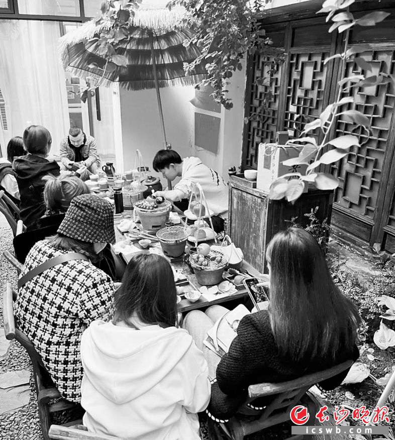 “围炉煮茶最近挺火的,以年轻人居多,我们的套餐推出之后便十分火热,到了周末经常需要等位。”太平街一家新中式茶馆的主理人表示,中式茶馆很重要的一点,是有氛围感、好出片,因此除了室内装扮成复古风,他还专门将室外融入了露营元素,白天能煮茶,晚上能烤肉,桌子一拼,还能承包公司的团建。