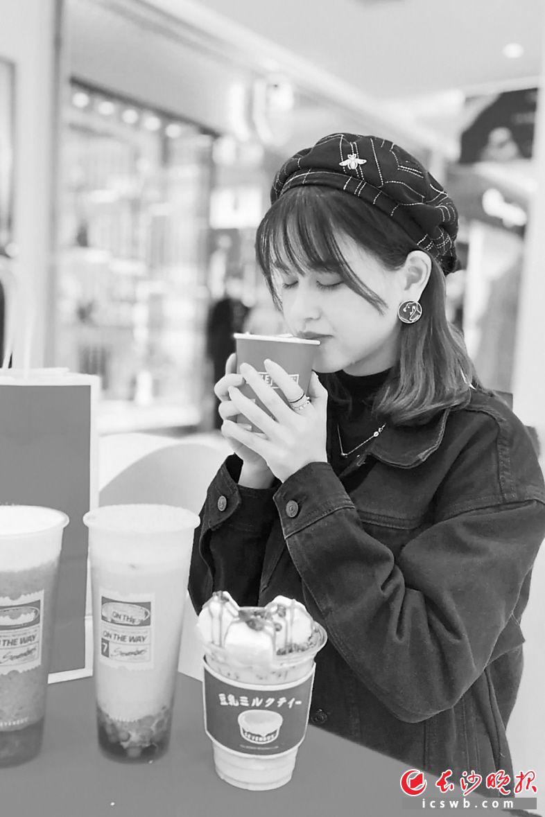 ▲消费者正在品尝一杯现做的热饮果茶。均为长沙晚报实习生 朱雨欣 摄