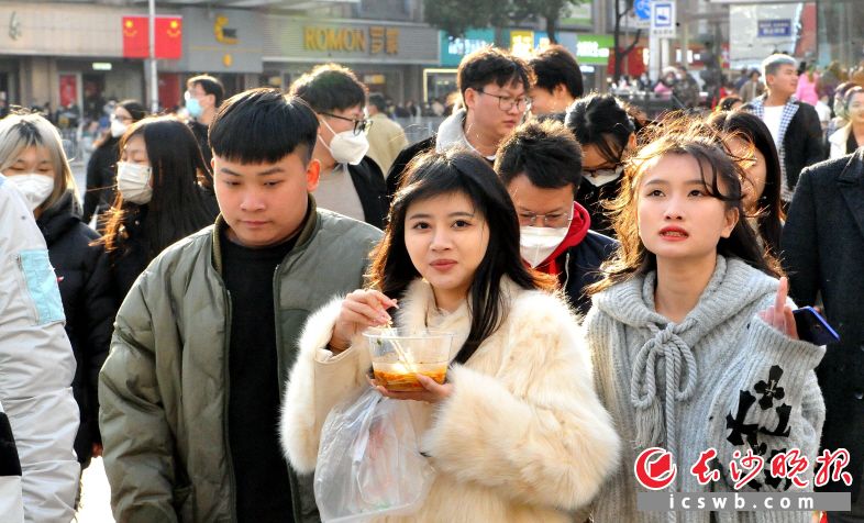 大年初六,在步行街、五一广场等繁华商业地带,逛街购物尝美食的游客人头攒动。长沙晚报全媒体记者 贺文兵 摄