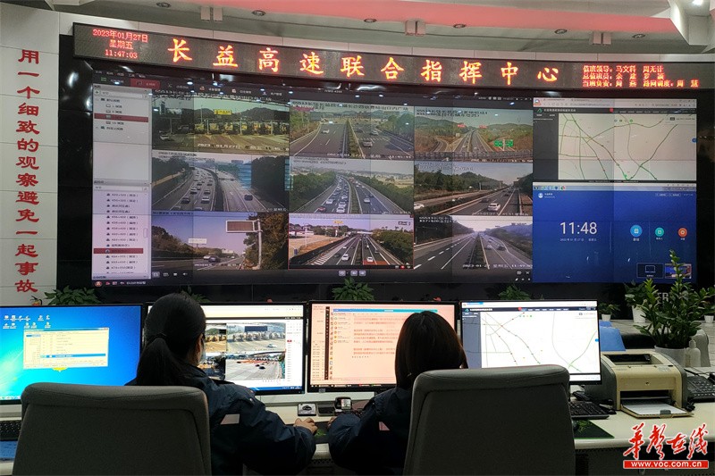 路警联动快速恢复交通。路警双方合署办公,养护、路产、交警、施救队伍实时共享路况信息、共商对策、共管交通,实现交通事故早发现、快撤离、防拥堵。返程车流高峰期,提前对长沙片区的收费站入口往东方向实行交通管控措施,远端诱导、近端分流,保主线、疏节点,确保返程车流通行顺畅。