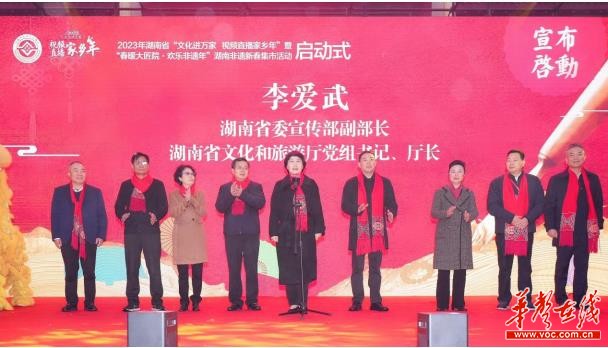 华声在线1月13日讯(记者 刘思佳 银韵 李焱燕 刘安安)1月13日下午,2023年湖南省“文化进万家——视频直播家乡年”暨“春暖大匠院·欢乐非遗年”湖南非遗新春集市在大汉国际工匠院启动。长沙弹词、打铁水、炭花舞、地花鼓、皮影戏、木偶戏等130余项好看、好玩、好吃的非遗项目精彩纷呈,为长沙市民奉上一场盛大的非遗新春礼。省委宣传部副部长、省文化和旅游厅党组书记、厅长李爱武宣布活动启动。