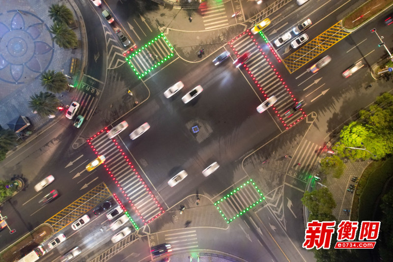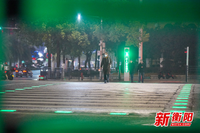 衡阳新闻网讯 记者孙云飞报道 1月3日晚,记者在解放大道与长湖街交汇路口看到,此前报道的“智慧发光斑马线”已正式投入使用。