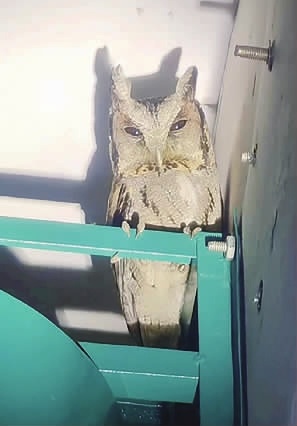 经协会工作人员初步分析,这是一只误闯进建筑物的领角鸮,是鸱鸮科、角鸮属的猫头鹰,属于国家二级保护动物。