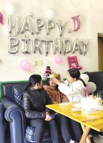 2月19日,志愿者们为女孩朵朵(化名)布置了生日气球,带来了生日蛋糕。 图/记者曾羽璇
