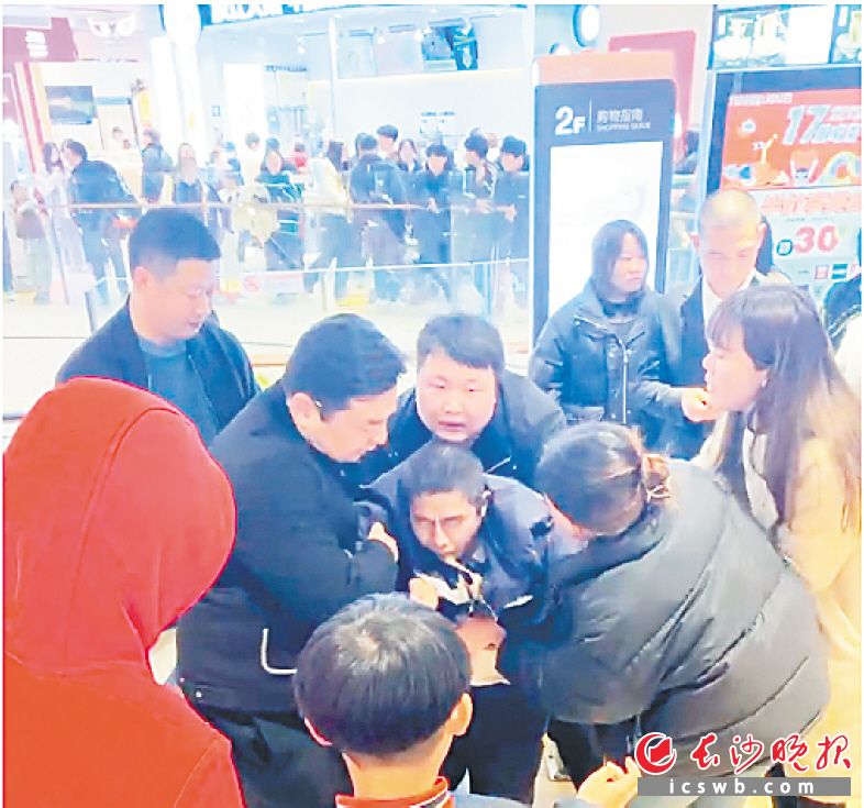 长沙晚报2月20日讯(通讯员 刘谢禹 全媒体记者 颜开云)“救人啊,有人噎住了!”2月18日傍晚,浏阳市天虹商场二楼电梯口旁,一名50岁左右的男子痛苦倒地,一旁的人高声呼救。