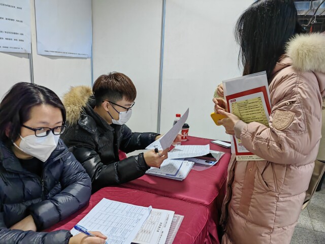疫情以来,医卫行业人才需求旺盛,各用人单位更是求贤若渴。花垣县人民医院、湖南妇女儿童医院人事专干早早地“堵”在门口发宣传资料,引导求职者到单位展位前投简历。