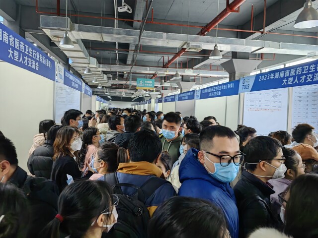 今年是疫情防控政策调整优化后的第一年,单位用工需求和群众求职意愿强烈。此次交流会是疫情过后湖南首场全省性医药卫生行业专场人才交流会,供需火爆,现场一度限流。