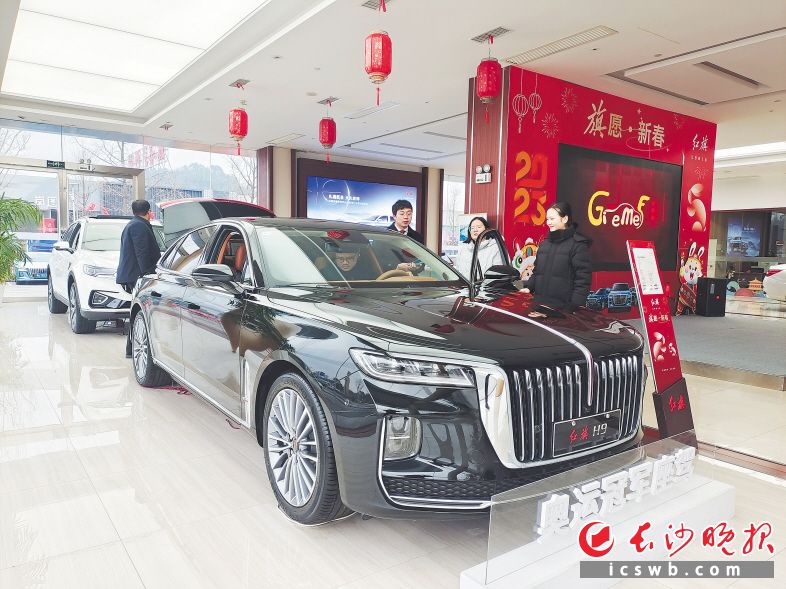 站在足有1000多平方米的湖南兰天一汽红旗4S店展厅,记者看到全新H5、HS5、HS7、H9、HQ9、EQM5、EHS9等各款展车被擦拭得一尘不染,整齐停放,十余位客户在销售顾问陪同下一边观察车型细节,一边向销售顾问询问销售政策,新春气息扑面而来。徐先生是一家建材店的老板,他的座驾本来早该换了,但三年疫情下来,市场不景气,他的建材店一直在苦苦支撑,虽然手中有些积蓄,但一直担心市场没有起色而不敢换车。春节后,看着街上的人多了起来,长沙的新房销售数据也在回升,这才终于拉着老婆来到了湖南兰天一汽红旗4S店,准备把豪华大气的红旗轿车开回家。