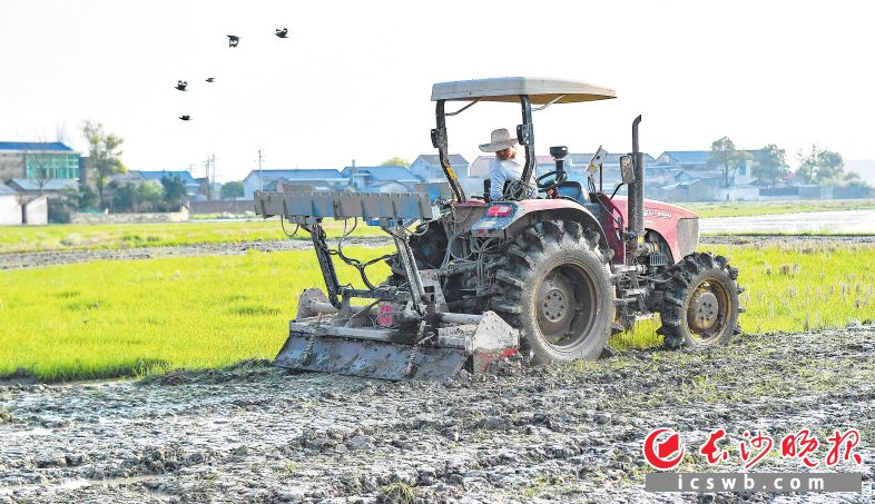 ▲双江口镇堪称宁乡“最大粮仓”。图为新农人在驾驶大型农机进行春耕生产。资料图片