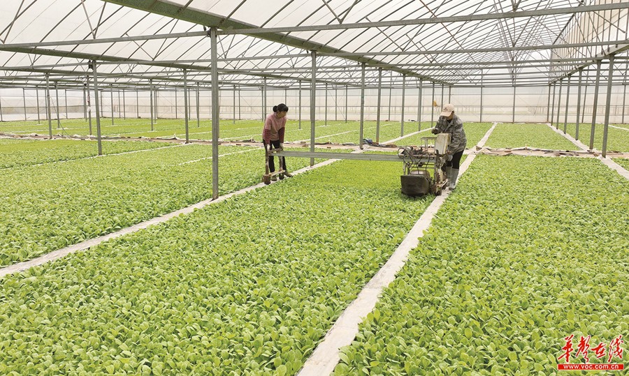 2月12日,江永县松柏瑶族乡烟苗大棚基地,村民在进行烟苗打叶作业。连日来,该县各地大棚种植户抢抓有利时机,开展耕地播种、育苗移栽、管理菜苗、修剪果树等农事活动。