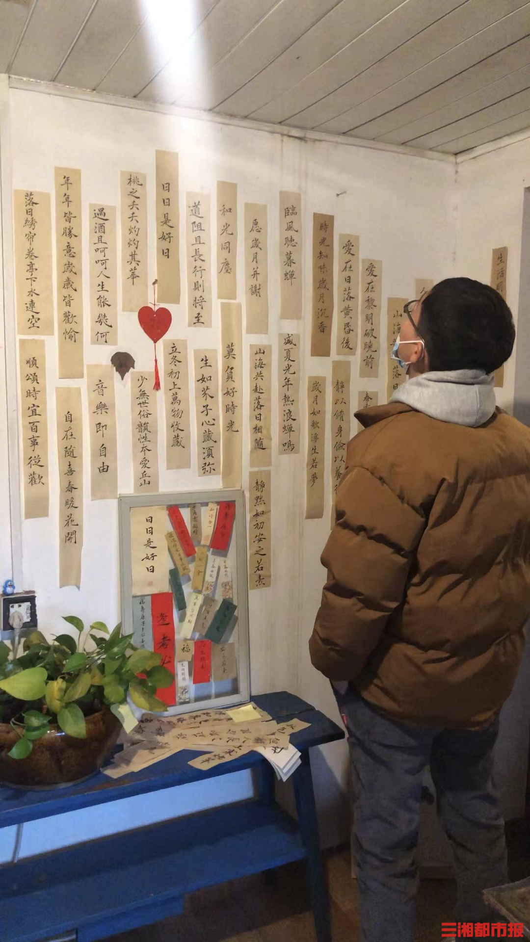 细细观察,书屋的墙上、门板、楼梯都贴满了各种书画,大多是书友们有感而发所写所画,随着时间的推移,小小书屋的东西越添越多,承载的也越来越多。