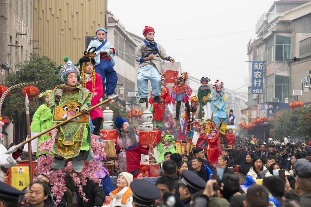 正月十五闹元宵。“咚咚锵!咚咚锵!”随着锣鼓声响起,一台台“故事”上演,喝彩声在挤满人的麻石街上此起彼伏。传承千年的民俗释放魅力,位于汨罗江畔的湖南省汨罗市长乐镇沸腾了起来。