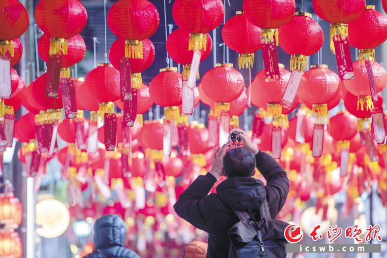 晚上的潮宗街到处张灯结彩,高高挂起的红灯笼营造出浓浓节日氛围。 本版图片除署名外均为长沙晚报全媒体记者 郭雨滴 摄