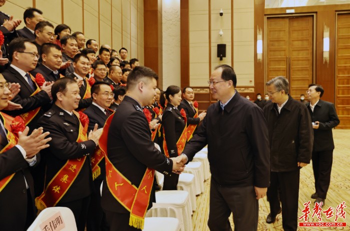 (2月3日上午,全省交通问题顽瘴痼疾集中整治行动总结表彰会在长沙举行。会前,省委副书记、省长毛伟明会见受表彰代表。华声在线全媒体记者 刘尚文 摄)