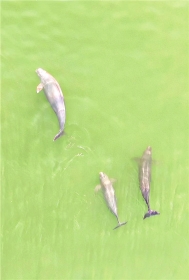 当天上午,记者跟随长沙市动植物疫病预防控制中心专家组沿湘江开展鱼类资源调查,11时许,到达长沙望城蔡家洲水域时,惊喜地看到长江江豚的身影,在现场可清晰地看到,至少有三头江豚在湘江畅游。