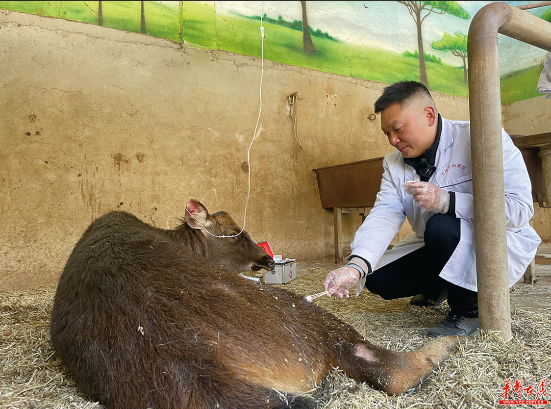 工作人员正在救治野生水鹿。杨洁规 摄