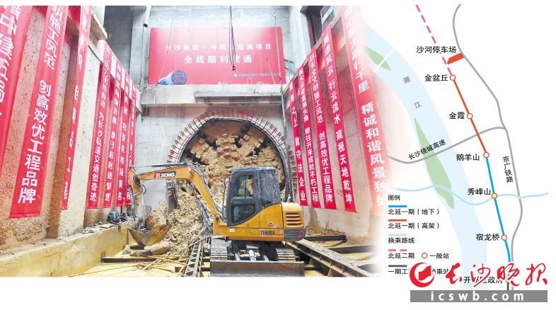 (3月29日,长沙地铁1号线北延一期工程鹅羊山站—秀峰山站左线盾构顺利贯通,意味着该工程盾构区间全线双向洞通。长沙晚报全媒体记者 王志伟 摄 制图/戴莹芳)