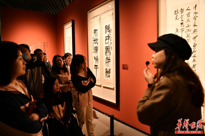 大家首先观看了“客中月光照家山——北京画院藏齐白石精品展”“湖湘百年美术之路”等展览,在湖南美术馆刘梦老师生动全面的讲解下,欣赏到以齐白石先生为代表的一大批湘籍艺术家的精品,通过他们的艺术人生,感受和见证了勤劳坚韧、图变求新、忠义爱国的湖湘精神,感受到百年湖湘风云激荡的艺术征程,体悟了前辈先贤呕心沥血勇攀艺术高峰的创新精神。