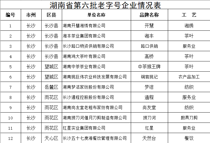 第六批“湖南老字号”经企业申报、市州商务主管部门初审、省商务厅组织专家评审等相关程序后确定。这74个品牌分布在全省多个市州,涉及食品、健康、餐饮、茶业、酒业、家纺等多个领域。