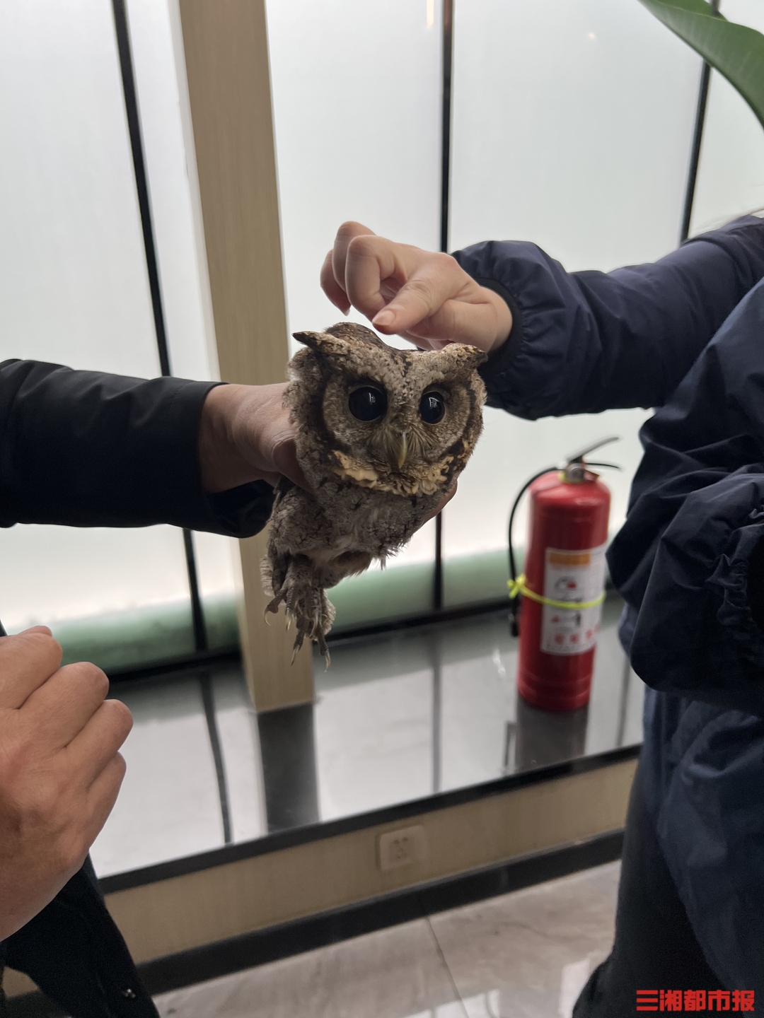 玩笑过后,监控员立即将情况上报,并联系当地森林公安与救助站。24日9时,野生动物保护工作人员来到监控大厅,在众人的帮助下,成功捕捉到该鸟。野生动物保护工作人员从外形、羽毛、颜色等多方确认该鸟为领角鸮,系国家二级保护野生动物。