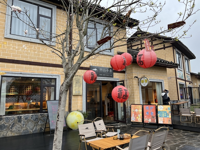 现在的竹山,民宿做成了旅居目的地。河边悬崖临水有22栋独门独院的轻奢民宿,苗寨里是11栋浓浓乡村农耕文化的乡趣民宿,背靠青山、面对河湖是睡在桃花中的22栋花涧民宿。小酒馆、咖啡馆、美食工坊、非遗作坊、露营基地、无边界温泉浴池、从文书屋错落布局,游览车在宽敞的道路上穿梭,村民在民宿院里院外忙活……春风拂面,岁月静好。