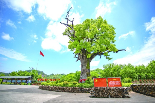 一进入樟树村,就看到一棵参天大树。粗壮的树干被裹上红布,树旁有绿植围栏保护。“这棵‘红军树’见证了慈利人民跟随贺龙闹革命的历史。”当地村民朱峰说,他自小听父亲讲述“红军树”的故事,对这棵古树有着深厚的感情。“红军树”讲解员朱勇介绍,1934年11月,红二、红六军团在王家坪开辟红色革命根据地成立了苏维埃区政府。1935年1月,贺龙和萧克等人在古樟树下召开动员大会,吸收游杂武装人员参加红军,老百姓在树上写了“红军万岁”四个大字,“红军树”的故事由此广为流传。