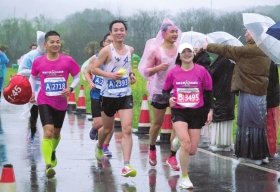 当天早上7时,天才刚蒙蒙亮。尽管还下着雨,但参赛选手已经集结完毕,开始进行热身运动。因为天气寒冷,参赛选手们大多数还是穿上了长衣长裤,部分身材纤细,看上去非常专业的选手都穿着工字背心和短裤。另外,赛前大家都穿上了薄外套对身体进行保暖。由于下雨,大部分人选择穿着雨衣跑步,跑到中途或者觉得雨衣有所阻碍时,再脱掉雨衣。