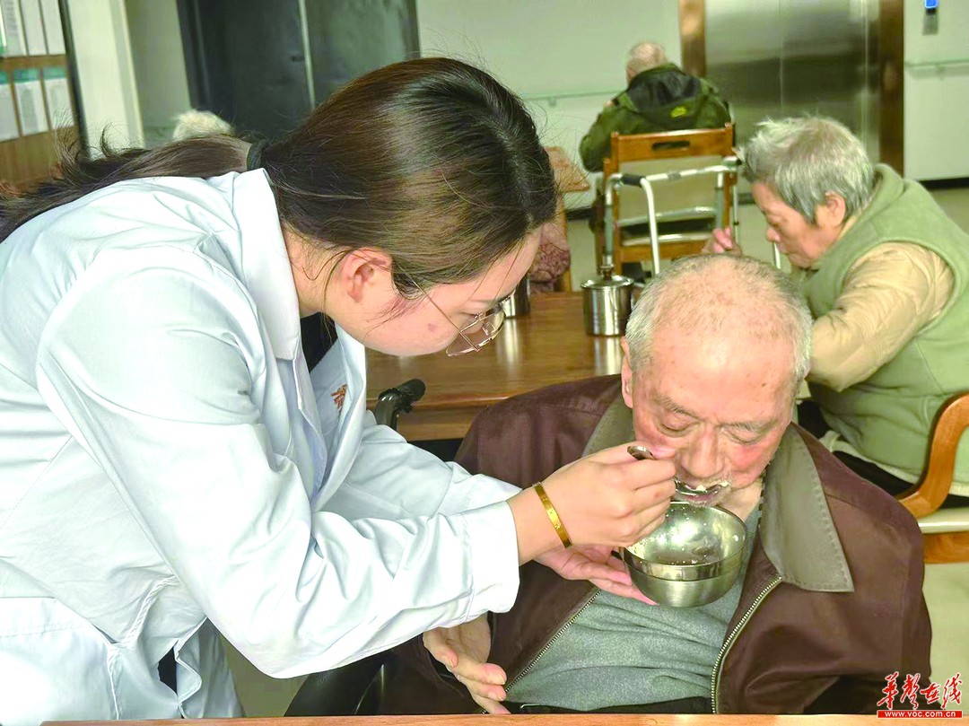 田灿灿正在照顾院内的老人就餐。 受访者 供图