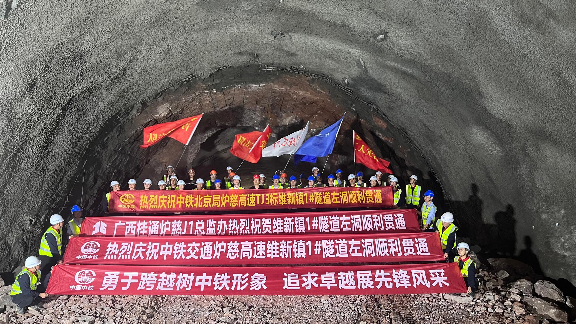 维新镇1#隧道左洞的提前贯通,为后续架梁施工凝聚了力量,同时也按下了炉慈高速建设加速键。