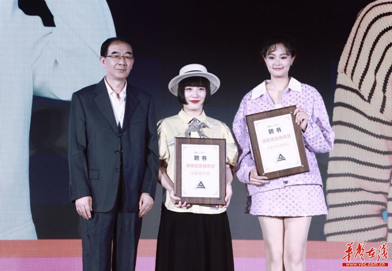 (现场为“湖南旅游推荐官”“湖南美食推荐官”授牌。)