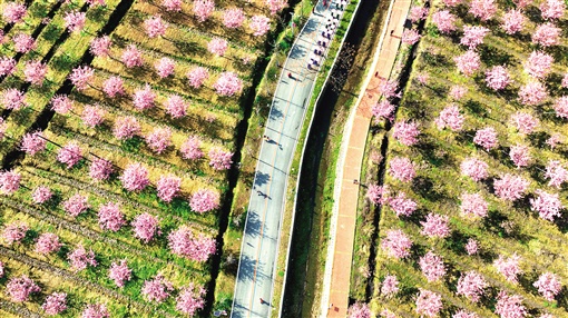 云溪首届樱花节现场,游客与樱花园相映成趣。