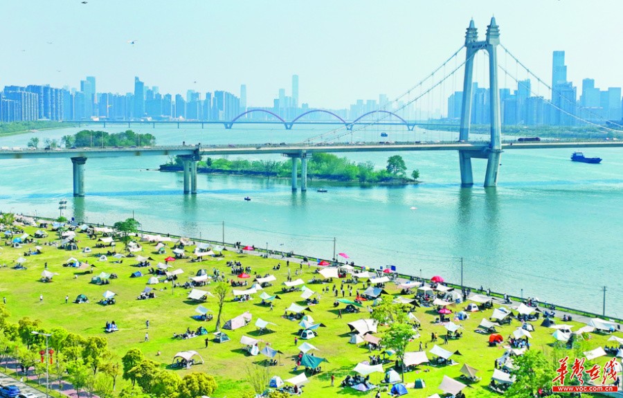 4月9日,长沙市春光明媚,不少市民利用周末假期来到户外搭起帐篷,亲近自然,尽享美好春光。