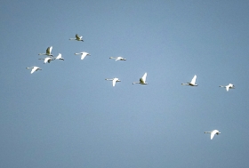 东洞庭湖的水域很少有人类涉足,水草丰茂,在这里饿不了肚子。度过了十来个日头,“晨晨”缩在芦苇荡一角,竖起耳朵,听到其他小天鹅商议去北方:“今天下午,天气暖和,我们走吧。”