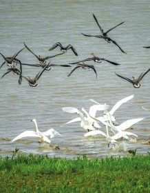 一个月前,它们还在洞庭的柔波中荡漾、嬉戏。如今,它们已飞过内蒙古,抵达吉林,做短暂的休整。