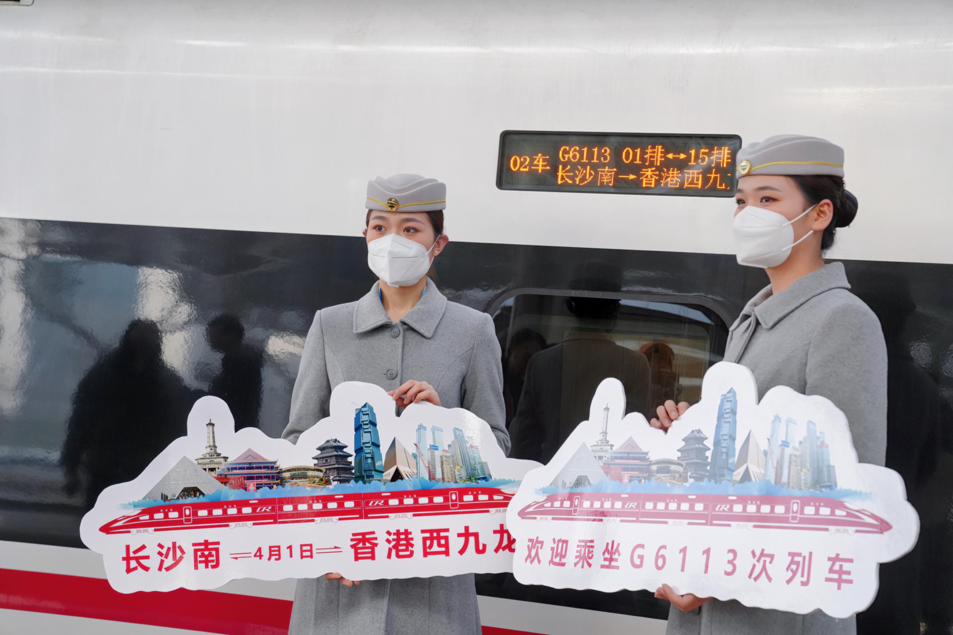 4月1日早上7:38分,G6113次列车缓缓从长沙南站站台驶出,这是恢复运行后,从长沙南站开行的首趟直达香港九龙站的列车,列车将于中午11:23分到达香港九龙站。