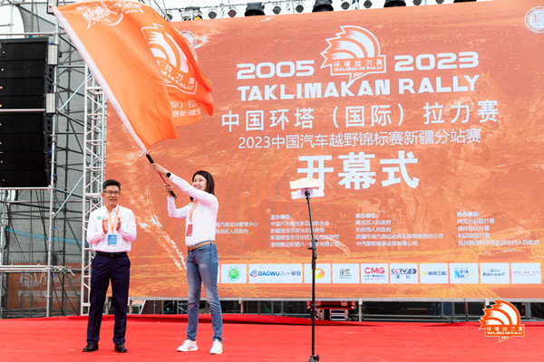 彩旗招展,人声鼎沸。5月20日上午,阿克苏市电影小镇内成为欢乐的海洋。2023年中国环塔(国际)拉力赛暨中国汽车越野拉力锦标赛新疆分站赛在这里举行隆重的开幕式暨发车仪式。