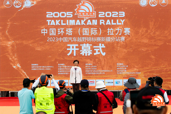 当日开幕式,自治区人民政府副主席孙红梅,中国汽车摩托车运动联合会主席詹郭军,自治区人民政府副秘书长王磊,自治区体育局党组书记丁有明,自治区文化和旅游厅党组书记徐锐军,阿克苏地委副书记、行署专员阿迪力•艾力,宝钢集团新疆八一钢铁有限公司党委书记、董事长吴彬,湖南广播影视集团有限公司(湖南广播电视台)党委副书记、总经理、台长、总编辑龚政文,自治区文联党组副书记、主席艾尔肯·塞来,阿克苏地委委员、阿克苏市委书记薛建强,和田地区行署副专员古丽尼沙汗•依明,喀什地区行署副专员张劲戈出席。