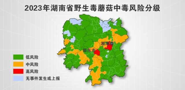2021年以来,湖南创新建立野生蘑菇中毒综合防控机制,积极推进风险分级和联防联控,制作了全国首张野生蘑菇中毒风险分级地图,对全省122个县市区实行风险分级管理,每年动态调整风险等级。