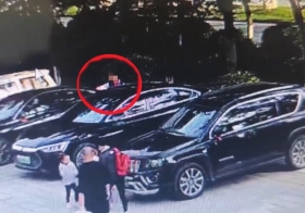 5月13日,市民童先生发布了一条短视频。视频是一段监控录像,画面中并排停放着多辆车辆。此时,一名穿着类似棒球服外套的小孩从车后方走过,只见他伸出右手,在多辆车后部划来划去。监控显示,此时时间为5月12日下午5时许。