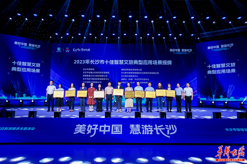 活动现场,主办方为长沙市博物馆、岳麓山风景名胜区管理局、长沙世界之窗有限公司、长沙县文旅信息中心、华强方特(长沙)旅游发展有限公司等十佳智慧文旅典型应用场景获奖者颁奖。这十家企业运用互联网、大数据、云计算等新技术,让旅游预订、导览、入住、排队等环节变得更加高效,大大丰富了文旅场景,裸眼3D、全息影像及元宇宙等技术,让“诗和远方”好看好玩、有趣有料。