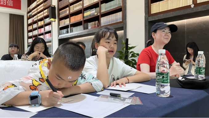 活动现场,小朋友们在带教老师的引领下,参观了文正学院、了解了曾国藩的简单生平,学习了古代人们对长辈的作揖礼、对平辈的拱手礼,朗读了曾国藩的家训,并学习了书信写作格式,写下了感谢母亲的一封信。虽然有些小朋友的字写得歪歪扭扭、或者用拼音来代替,但现场收到孩子信的妈妈都露出了开心的笑容。