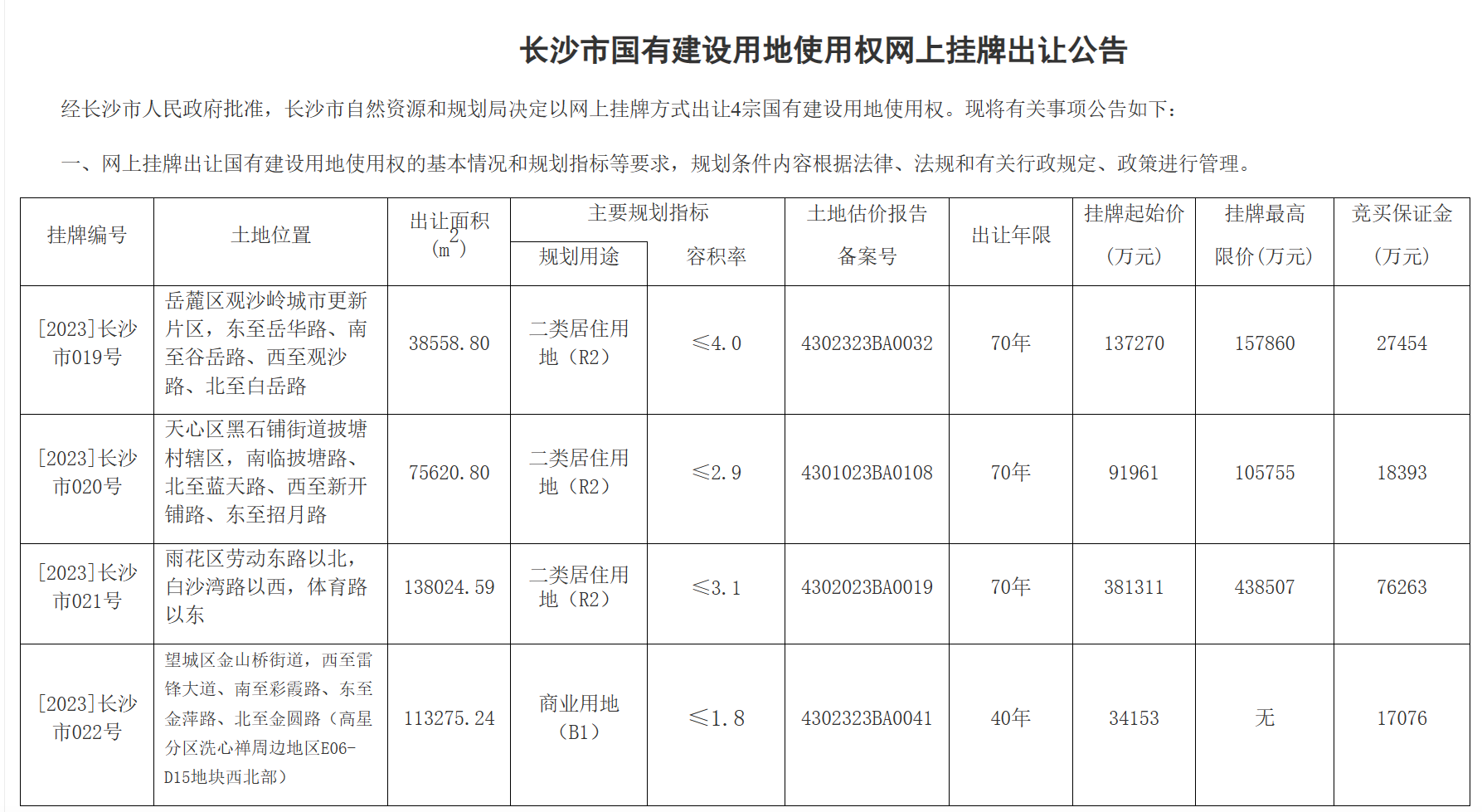 本批次挂牌中挂出了一宗商业地块,即[2023]长沙市022号地块。