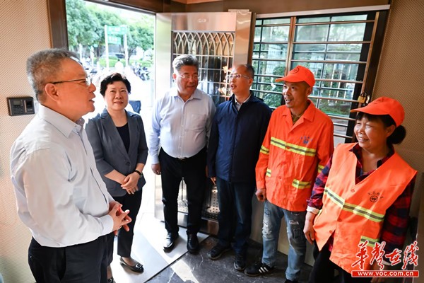 (5月1日,沈晓明来到长沙市芙蓉广场的环卫工人休息间,对环卫工人的辛勤工作表示慰问和感谢。)