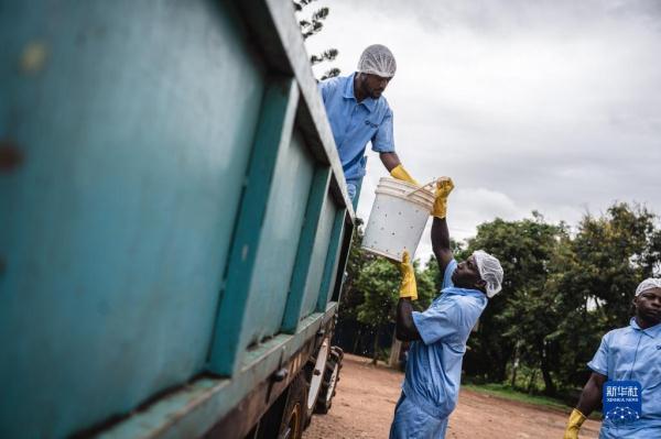 工作人员在肯尼亚夸莱郡希莫尼镇举行的首发仪式上将鳀鱼干装车(6月23日摄)。新华社记者 王冠森 摄
