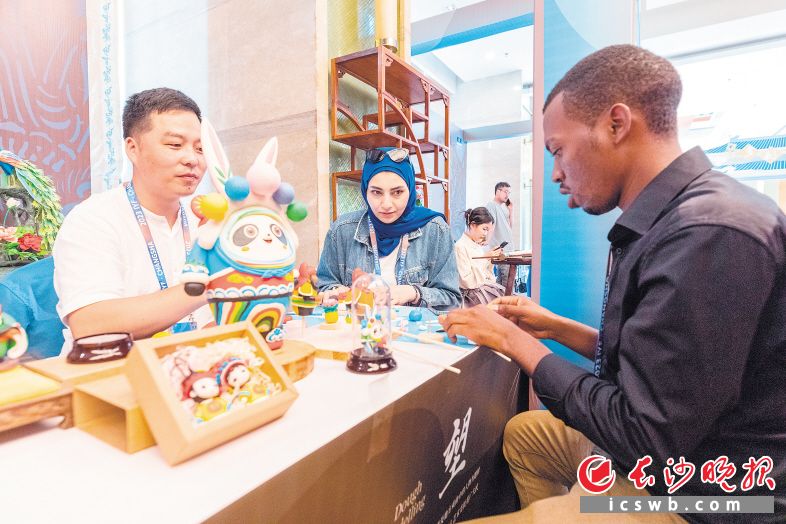 ▲活动期间,“一带一路”沿线国家青年代表跟非遗传承人学习面塑。长沙晚报全媒体记者 董阳 刘晓敏 摄影报道