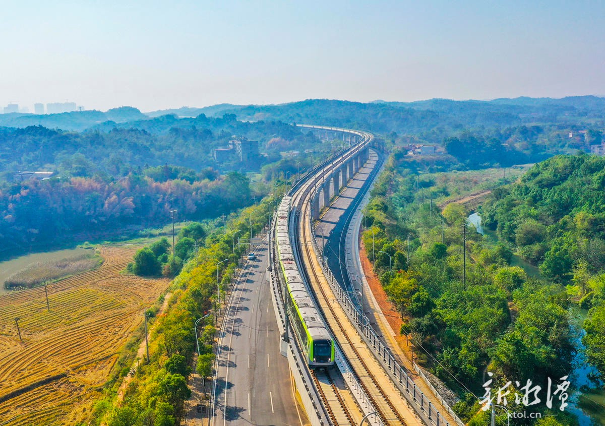 晴空万里,长株潭城际轨道交通西环线一期工程如一条钢铁巨龙,腾跃在三湘四水间,成为助力湖南高质量发展的“新引擎”。
