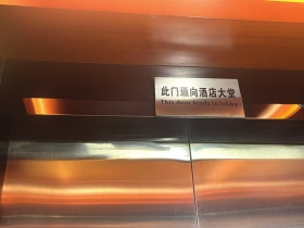 电梯有提示:通向酒店大堂。组图/记者满延坤