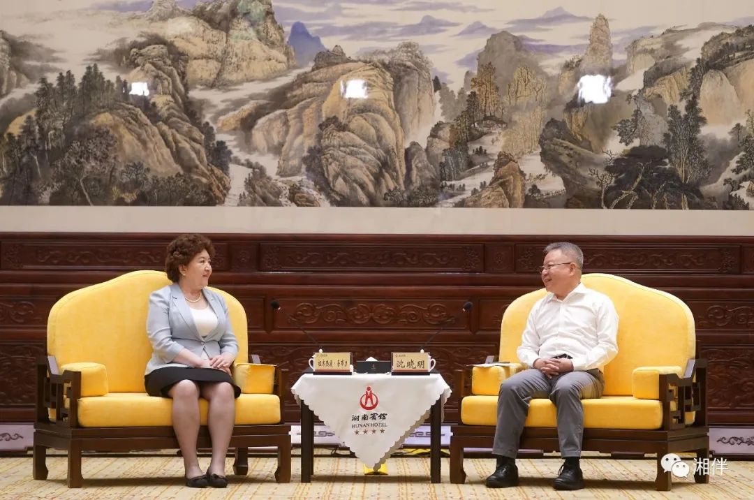 6月13日至14日,新疆维吾尔自治区党政代表团来湘考察。在湘考察期间,省委书记沈晓明会见新疆维吾尔自治区人大常委会主任祖木热提·吾布力一行;省委副书记、省长毛伟明出席湖南省与新疆维吾尔自治区对口支援工作座谈会并讲话。