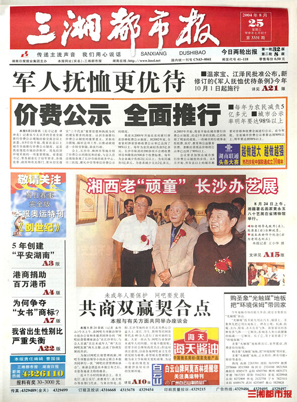 翻看三湘都市报合订版,黄永玉先生曾为湖南日报赠画题字,曾多次接受三湘都市报专访,与记者笑谈快乐人生。他曾说“看来一百岁之前是没时间玩了”,却一手文学一手绘画,潇潇洒洒“玩”到了99岁。