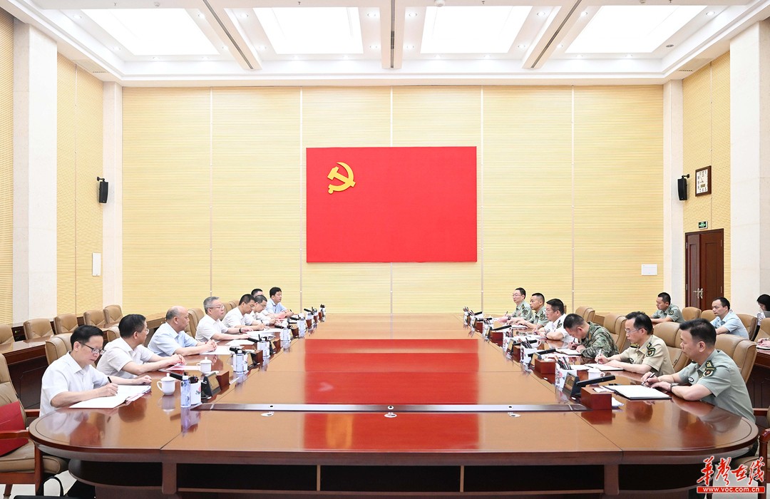 在听取省军区、武警湖南总队相关情况介绍后,沈晓明指出,省军区各级和驻湘武警部队始终坚持党对人民军队的绝对领导,深入贯彻落实军委主席负责制,牢记职责使命,急地方之所急、想群众之所想,在应急救援、维稳处突、扶贫帮困和军民融合发展中冲锋在前、勇挑重担,为全省改革发展稳定大局作出了积极贡献,以实际行动践行了听党指挥、能打胜仗、作风优良的铮铮誓言。当前,全省上下正在深入学习贯彻习近平总书记关于湖南工作的重要讲话和指示批示精神,全面落实“三高四新”美好蓝图,希望省军区各级和驻湘武警部队把部队所能与地方所需结合起来,为建设社会主义现代化新湖南作出更大贡献。省委、省政府将一如既往支持驻湘部队各项事业发展,充分保障军人军属合法权益,用心用情解决实际问题,加强退役军人服务保障,为部队发展创造良好条件。全省各级党委、政府要持续抓好拥政爱民、拥军优属各项工作,不断巩固和发展新时代军政军民团结。
